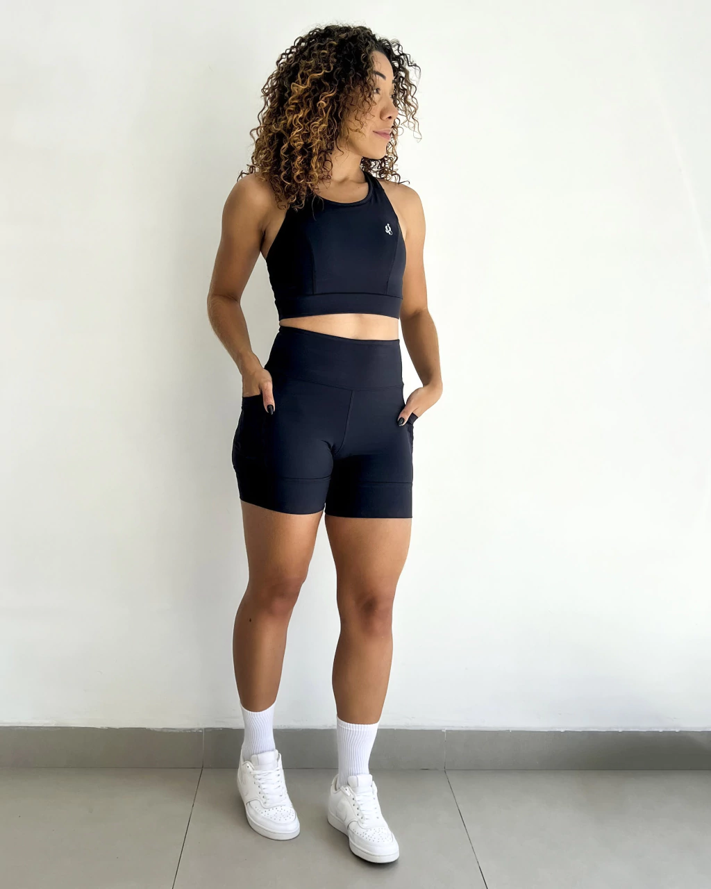 Um top pensado nos mínimos detalhes para entregar performance, proteção e elegância — perfeito para corredoras que levam o treino a sério.