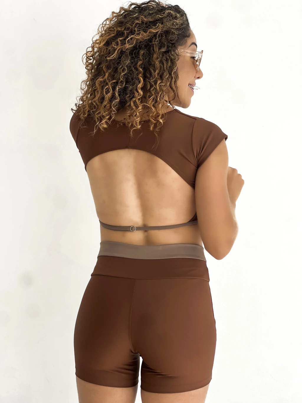 Com manguinha curta, decote nas costas e alça com regulador, permite ajuste personalizado, garantindo firmeza sem comprometer a mobilidade. O forro interno e bojo removível proporcionam suporte extra e conforto, enquanto o tecido duplo no busto mantém a postura e previne impactos.